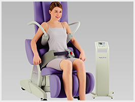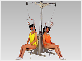 腰掛けるだけで牽引できるので従来のベッド型牽引と比べ患者様の負担が減ります。
